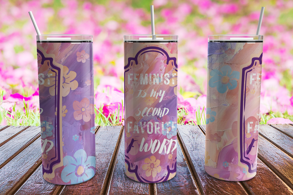 Feminist is my Second Favorite F word, Tumbler Wrap PNG, 20oz Tumbler Design, Colorful PNG, Swear Word PNG, Sublimation PNG, Brown and Pink Tumbler, PNG